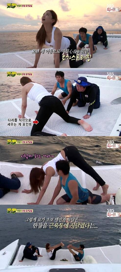 '정글의 법칙' 이태임이 선상요가로 볼륨몸매를 드러냈다.지난 2일 방송된 SBS '정글의 법칙 in 코스타리카'(이하 '정글의 법칙')에서 이태임은 선상 위에서 김병만, 류담에게 요가 강습을 하는 모습이 그려졌다.이날 이태임은 오랜 항해에 지친 김병만과 류담을 위해 요가 강습을 자처했다. 이태임은 "들이쉬고 내쉬는 숨에 하늘을 봤다가 허리를 안으로 말아야 한다"며 김병만과 류담의 턱과 등을 잡고 자세를 직접 교정해 주는 등 세심하게 가르쳤다.특히, 실제로 몸매 관리를 위해 꾸준히 요가를 해 온 이태임은 고난이도의 고양이 자세를 선보여 눈길을 끌었다. 더욱이 선상요가를 통해 탄탄한 몸매와 풍만한 가슴골을 드러내 보는 이들의 탄성을 자아냈다.이태임 선상요가를 접한 네티즌들은 "이태임 선상요가 눈 둘 곳 없네", "이태임 선상요가 화보 같아", "이태임 선상요가 고난이도 동작도 척척 대단해", "이태임 요가여신으로 임명합니다", "이태임 선상요가 아찔해", "이태임 선상요가 남심 올킬" 등의 반응을 보였다.[이태임 선상요가, 사진=SBS '정글의 법칙' 방송 캡처]