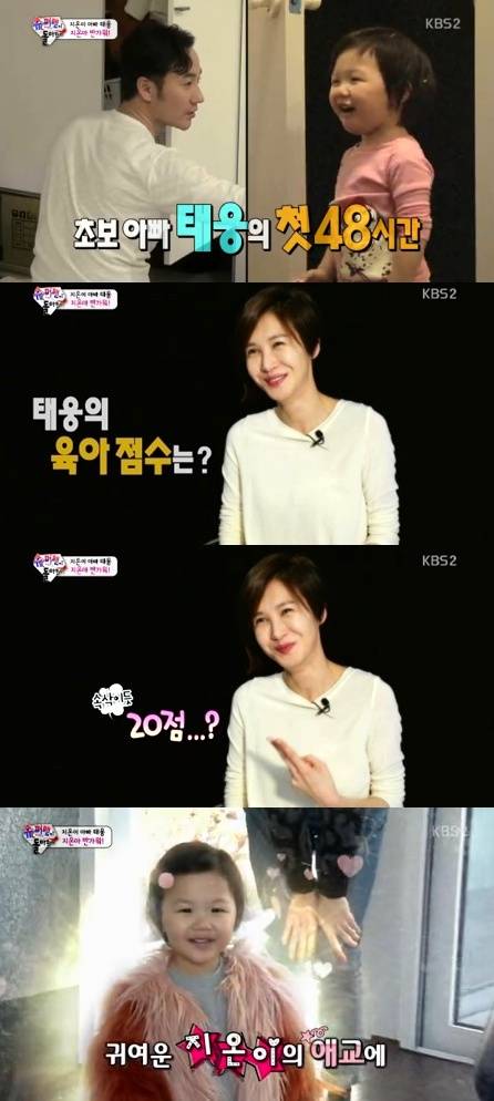 엄태웅의 아내 윤혜진이 남편의 육아점수를 매겼다.4일 방송된 KBS 2TV '해피선데이-슈퍼맨이 돌아왔다'(이하 '슈퍼맨')에서는 '슈퍼맨' 가족에 합류한 배우 엄태웅과 그의 딸 엄지온이 시청자들에게 첫 인사를 건넸다.엄태웅 아내 윤혜진은 국립발레단 수석 무용수로 활약했다. 이날 윤혜진은 "몬테카를로 발레단에 합격해 잠깐 갔다가 돌아와서 이렇게 지온이 엄마로 살고 있다"고 자신을 소개했다.이어 남편 엄태웅에 대해 "자상한 스타일이다. 기본은 되는 것 같다"고 솔직하게 밝혔다. 하지만 제작진이 육아점수를 묻자 윤혜진은 한숨을 푹 쉬며 "20점"이라고 속삭이듯 답해 웃음을 자아냈다.['슈퍼맨' 엄태웅 아내 윤혜진, 사진=KBS2 '슈퍼맨이 돌아왔다' 방송 캡처]