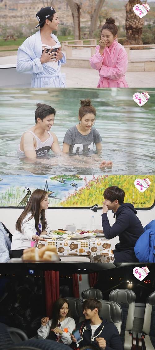 '우결' 송재림 김소은 부부가 신혼여행 중 티격태격 한다.10일 방송될 MBC '우리 결혼했어요 시즌4'(이하 '우결')에서는 송재림 김소은 부부가 터키 최고의 온천 유적지 파묵칼레의 온천 수영장을 는 모습이 그려진다.평소 수영을 좋아하는 송재림은 물 만난 고기처럼 수준급 실력을 선보이고, 이를 지켜보던 김소은은 "이 장면을 본 것 같다"고 이야기 하며 과거 송재림이 출연했던 드라마 속 '수중 키스신'과 언급하며 질투심을 드러냈다.이후 온천 수영을 마치고 배가 고파진 두 사람은 현지 식당을 찾았다. 두 사람은 결혼한 지 벌써 100일이라며, 서로에 대해 얼마나 아는지 이야기 나눴다. 김소은에 대해 아는 것들을 쭉 늘어놓던 송재림은 생일을 잘못 말하는 대형 실수를 저지르고 만다.이어 카파도키아행 야간버스를 타고 10시간 넘는 장거리를 이동하게 된 송재림은 눈웃음에 애교까지 폭발하며 어느 때보다 기분 좋아하는 모습을 보였다. 이유를 묻는 김소은에게 송재림은 "너랑 가까이 있어서"라며 야간버스 탑승에 만족감을 보였다.MBC '우리 결혼했어요'는 1월 10일 오후 5시 방송된다.['우리결혼했어요' 송재림 김소은, 사진=MBC]