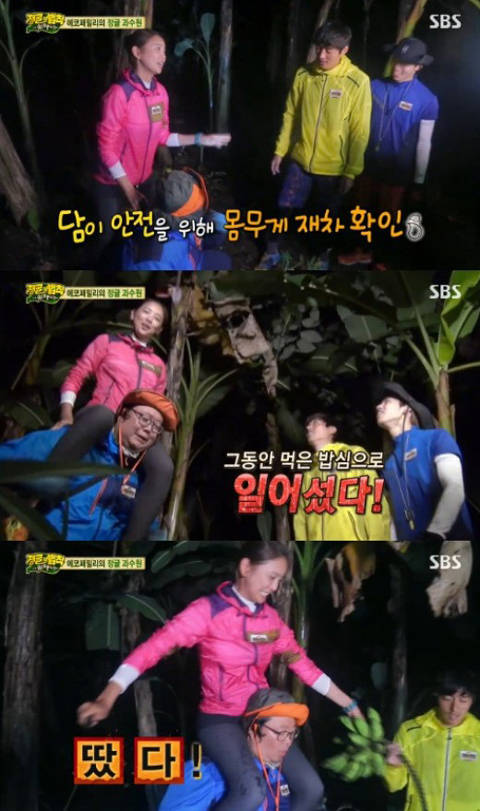 '정글의 법칙 '이태임이 자신의 몸무게를 직접 공개했다.이태임은 지난 9일 방송된 SBS '정글의 법칙 in 코스타리카'(이하 '정글의 법칙')에서 멤버들의 도움을 받아 바나나 따기에 도전했다.이날 류담은 높은 나무에 달려있는 바나나를 따기 위해 이태임을 목마에 태우기로 했다. 하지만 이태임은 목마에 타기도 전부터 걱정스러운 반응을 보였다.이에 이태임은 "내 몸무게 48kg이다. 50kg는 절대 안 나간다"라고 몸무게를 밝히며 류담을 안심시켰다. 이후 류담은 힘겹게 이태임 목마 태우기에 성공해 눈길을 끌었다.['정글의 법칙' 이태임 몸무게, 사진=SBS '정글의 법칙' 방송 캡처]