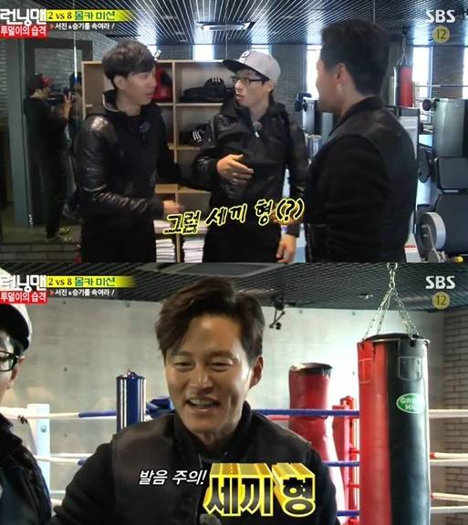 유재석이 이서진에게 '세끼형'이라고 불러 폭소를 자아냈다.이서진은 11일 방송된 SBS '일요일이 좋다-런닝맨'(이하 '런닝맨')의 '짝 만들기 레이스' 편에 합류, 지난주 대활약을 펼친 이승기, 문채원 커플과 함께 호흡을 맞췄다.이날 이서진을 만난 유재석은 "세끼형!"이라며 격하게 반겼다. 이서진은 앞서 tvN 예능프로그램 '삼시세끼'를 통해 시청자들과 만났다.특히, '런닝맨' 제작진은 "밥하느라 바빴던 이분"이라며 "세끼형 발음 주의"라고 센스있는 자막을 덧붙여 시청자들의 웃음을 유발했다.이후 이서진은 시종일관 투덜대면서도 적극적으로 게임에 참여하는 전무후무한 예능 캐릭터로 색다른 활약을 펼쳤다.['런닝맨' 이서진 유재석, 사진=SBS '런닝맨' 방송 캡처]