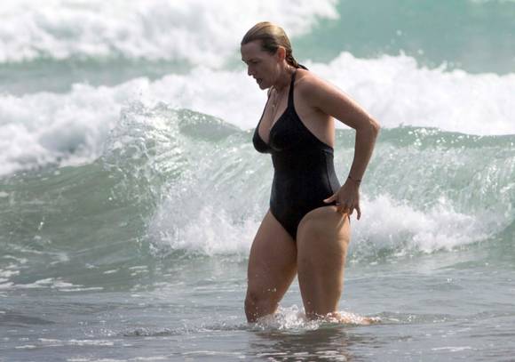 영화 '타이타닉'을 통해 세계적인 스타로 등극한 할리우드 배우 케이트 윈슬렛(39)의 확 달라진 몸매가 포착됐다.13일(현지시간) 미국 연예매체 스플래쉬닷컴은 케이트 윈슬렛(39) 근황이 담긴 수영복 사진을 공개했다.케이트 윈슬렛은 최근 그녀의 가족과 함께 뉴질랜드 오클랜드의 한 해변에서 휴가를 즐겼다. 공개된 사진 속 케이트 윈슬렛은 검은색 원피스 수영복을 입고 후덕한 몸매를 드러냈다.이번 휴가에는 그녀의 세 자녀인 미아(14), 조(11), 베어(13개월)와 비롯해 2013년 12월 결혼한 3세 연하 남편 네드 로큰롤(36)도 함께였다.특히, 눈길을 끄는 것은 케이트 윈슬렛의 넉넉한 몸매. 그간 임신, 출산 등으로 큰 체형 변화를 겪은 그녀는 '타이타닉' 출연 당시의 글래머러스한 몸매와 달리 군살 가득한 '아줌마'스러운 모습으로 남성들의 환상이 깨질 것으로 보인다.[케이트 윈슬렛, 사진=TOPIC/SplashNews(www.splashnews.com)]
