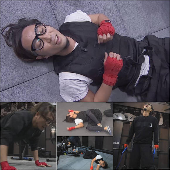 이어 송가연의 훈련에 넉다운당해 바닥과 한 몸이 된 정재형의 모습이 공개됐다. 정재형은 훈련이 힘든지 바닥에 철퍼덕 널브러져 있다. 특히, 정재형의 부실한 하체가 웃음을 자아내는 가운데, 몸을 가누지 못하는 정재형의 애처로워 보였는지 정재형의 발을 로잉 머신 위에서 내려주고 있는 송가연의 모습이 눈길을 끈다.