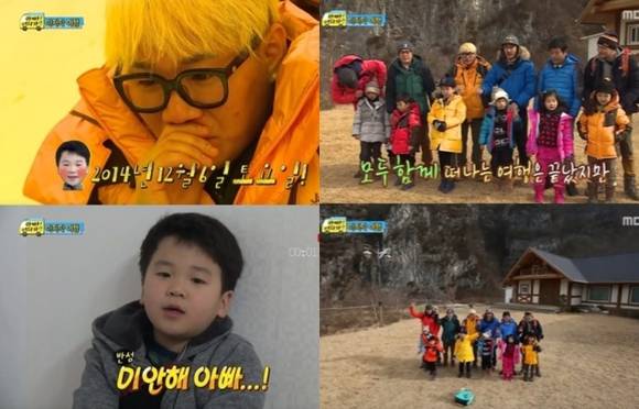 '아빠어디가'가 아쉬움 속에 종영을 맞았다.지난 18일 방송된 MBC '일밤-아빠! 어디가?'(이하 '아빠어디가')에서는 지난 1년여의 여행을 마무리하는 졸업여행을 떠난 가족들이 이야기가 그려졌다.이날 제작진은 여행을 앞두고 아빠들에게 추억이 담긴 앨범을 선물했다. 특히, 아이들은 마지막 여행을 위해 아빠들에게 줄 서프라이즈 선물을 준비했다. 바로 영상편지를 선보인 것.윤후는 아빠에게 첫 여행 때 엄마가 보고 싶다며 울었던 것을 회상하며 "아빠의 아들로 태어나길 잘한 것 같아요"라고 속마음을 고백해 아빠 윤민수를 눈물 짓게 했다.김성주 아들 김민율은 "엄마한테는 비밀인데 예전엔 엄마가 좋았는데 지금은 아빠가 좋다"고 털어놔 웃음과 함께 뭉클함을 자아냈다.한편, 시청률 조사회사 닐슨코리아에 따르면 18일 방송되 MBC '아빠어디가' 마지막회는 전국 기준 4.9%를 기록하며 동시간대 최하위에 머물렀다.[아빠어디가 종영, 사진=MBC '아빠어디가' 방송 캡처]