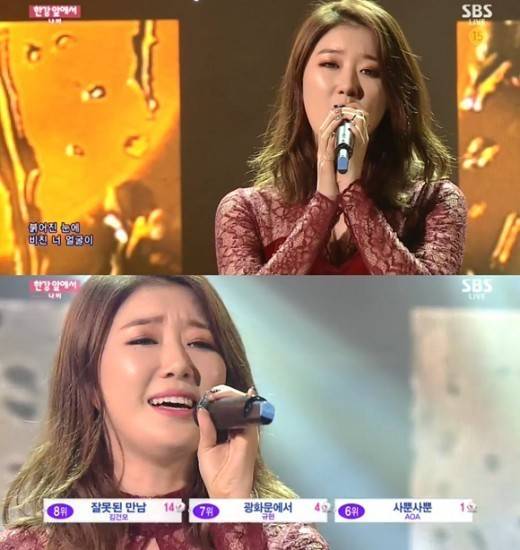 앞서 나비는 이날 방송된 SBS '인기가요'에서 신곡 '한강 앞에서'를 열창하다 팬들의 '사랑해요 안지호'라는 떼창 응원에 웃음을 터트려 초반 가사를 놓쳤다.