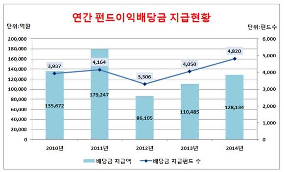 지난해 펀드이익배당금이 전년대비 16% 증가한 12조8134억원을 기록한 것으로 나타났다.