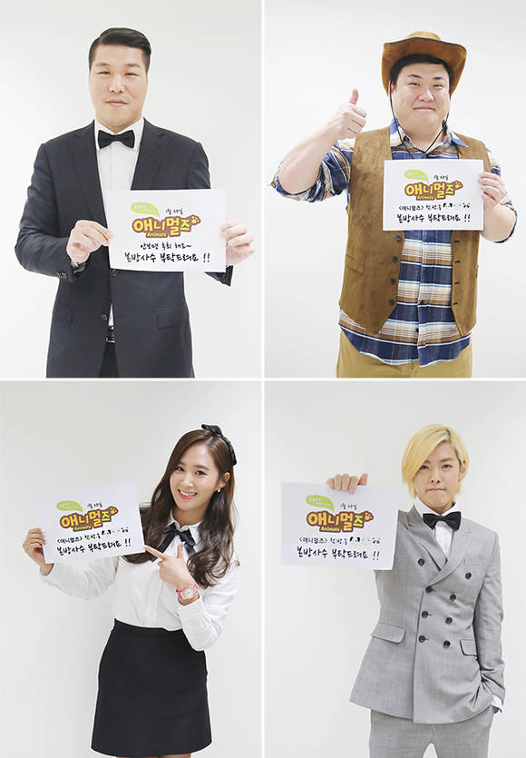 MBC 새 예능프로그램 '일밤-애니멀즈' 측은 거인커플 서장훈, 김준현과 꽃미녀 유리, 꽃미남 강남의 본방사수를 독려하는 사진을 공개했다.