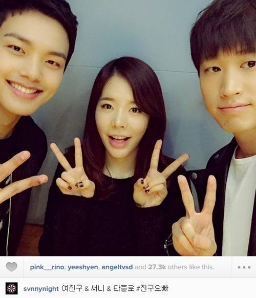 소녀시대 써니가 여진구를 향해 사심을 드러냈다.써니는 26일 오후 자신의 인스타그램에 "여진구&써니&타블로. 진구오빠"라는 글과 함께 한 장의 사진을 게재했다.공개된 사진 속 써니는 타블로와 여진구 사이에서 환하게 웃으며 양손 브이를 그리고 있다. 특히, 여진구는 19살이라는 나이가 믿기지 않을 정도의 의젓하고 훈훈한 외모로 누나 마음을 설레게 했다.써니는 여진구보다 누나임에도 '진구오빠'라는 해시태그로 누나팬의 마음을 숨기지 못해 웃음을 자아냈다.한편, 여진구는 지난 23일 방송된 MBC FM4U '써니의 FM데이트'에 출연했다.[써니 진구오빠, 사진=써니 인스타그램]