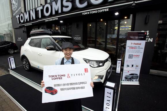 탐앤탐스는 쌍용자동차 티볼리와 함께 'T-페스티벌'을 진행, 티볼리 등 푸짐한 상품을 받을 수 있는 이벤트를 연다고 27일 밝혔다.'T-페스티벌' 참여는 탐앤탐스 매장에 방문하여 쟁반 위의 트레이매트에 인쇄된 QR코드를 통해 이벤트 페이지로 접속한 후 구매영수증에 표기된 행운번호 18자리를 입력하고 행운의 알파벳을 맞추면 응모가 완료된다. 이벤트는 내달 22일까지 전국 탐앤탐스 매장에서 참여 가능하며, 추첨을 통해 △티볼리(1명), △티볼리 여권지갑(50명), △탐앤탐스 기프트카드 3만원(100명), △탐앤탐스 델리프레즐 세트(500명) 등 푸짐한 상품이 제공된다.아울러 탐앤탐스는 티볼리 출시를 기념해 다양한 홍보를 지원한다. 탐앤탐스 오디세이아 청담점에서는 티볼리 실제 차량을 전시하고 있으며, 영등포 탐스퀘어점에서는 2-3층에 걸쳐 티볼리 홍보 랩핑을 부착했다. 또한 전국 탐앤탐스 매장에서 티볼리 티저 영상을 송출하며 고객들의 시선을 끌고 있다.탐앤탐스 이제훈 마케팅기획팀장은 "탐앤탐스의 'T'와 티볼리의 'T'가 만난 이번 프로모션을 통해 탐앤탐스를 찾는 많은 고객들이 커피도 즐기고 티볼리의 주인공이 되는 행운의 기회까지 얻게 되길 바란다"고 전했다.