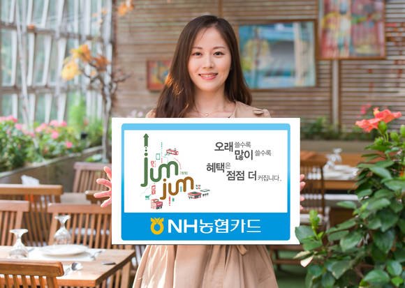 NH농협카드는 이용금액이 많고 연속 이용기간이 길수록 혜택이 점점 더 커지는 '점점(JumJum)카드'를 9일 출시했다.