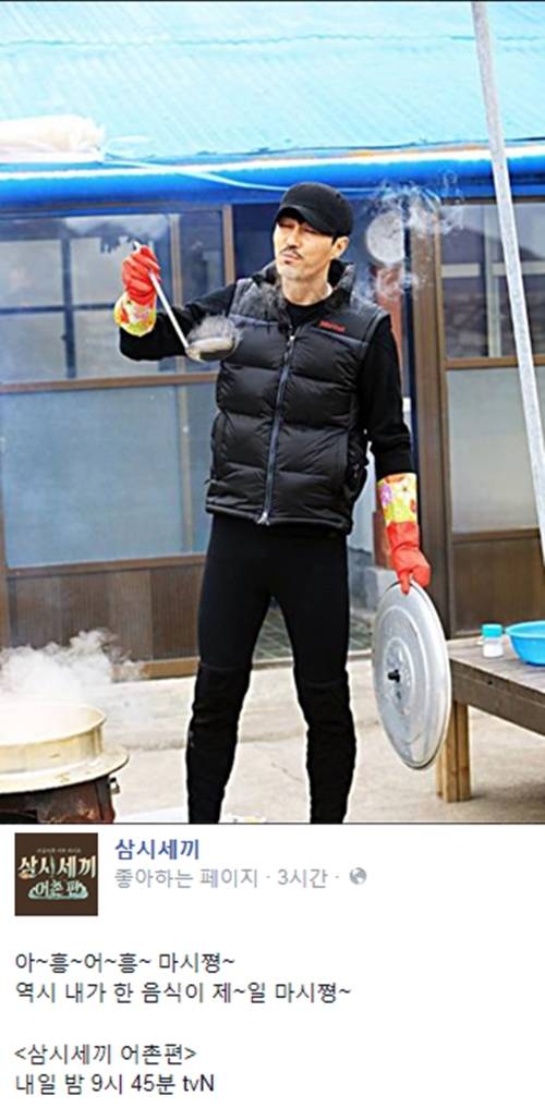 '삼시세끼 어촌편' 차승원이 자신의 요리를 자화자찬했다.tvN '삼시세끼-어촌편' 측은 12일 공식 페이스북에 "아~흥~어~흥~ 맛있어~역시 내가 한 음식이 제일 맛있어"라는 글과 함께 한 장의 사진을 게재했다.공개된 사진 속 차승원은 자신이 만든 음식의 맛을 보면서 크게 만족스러워하고 있다. 특히, 김이 모락모락 나는 솥 옆에서 국자를 든 채 눈을 감고 맛을 음미하는 차승원의 모습이 웃음을 자아낸다.'삼시세끼' 차승원 사진을 접한 네티즌들은 "삼시세끼 어촌편 오늘도 본방사수", "차줌마 매력에 푹 빠졌어요", "어묵탕 어떻게 만들어질지 기대만발", "삼시세끼 차승원 요리 볼수록 감탄이 절로 나와", "보기만 해도 맛있을 듯" 등의 반응을 보였다.한편, tvN '삼시세끼 어촌편' 4화는 13일 오후 9시 45분에 방송된다.['삼시세끼' 차승원, 사진=tvN '삼시세끼 어촌편' 공식 페이스북]