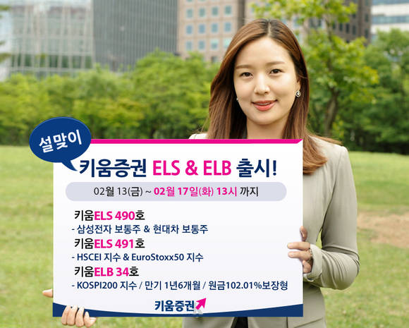 키움증권은 설 연휴를 앞두고 오는 17일 오후 1시까지 원금보장형 주가연계 파생결합사채(ELB) 1종 및 원금비보장형 주가연계증권(ELS) 2종을 판매한다고 16일 밝혔다.