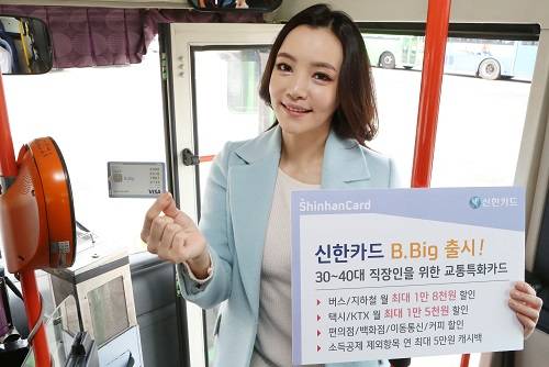 한편 출시를 기념하는 이벤트도 펼쳐진다. 3월 말까지 ‘B.Big’을 신한카드 홈페이지(www.shinhancard.com)를 통해 신규로 발급 받고 교통업종 이용일수가 10일 이상인 고객을 대상으로 5만원(10명), 3만원(30명), 1만원(50명), 5천원(100명) 캐시백을 경품으로 제공한다.