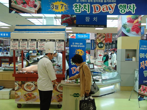 참치를 잡는 동원산업과 사조씨푸드는 이에 이마트 144개 전국 매장에서 '참치데이'를 열고 횟감용 참치를 50% 할인 판매한다.