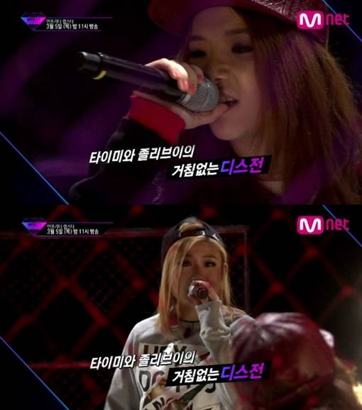 5일 방송될 Mnet '언프리티 랩스타' 제5화에선 과거 '디스전'을 통해 앙숙 관계를 형성했던 타이미와 졸리브이가 숙명의 일대일 랩 배틀을 펼칠 예정이어서 눈길을 끈다.