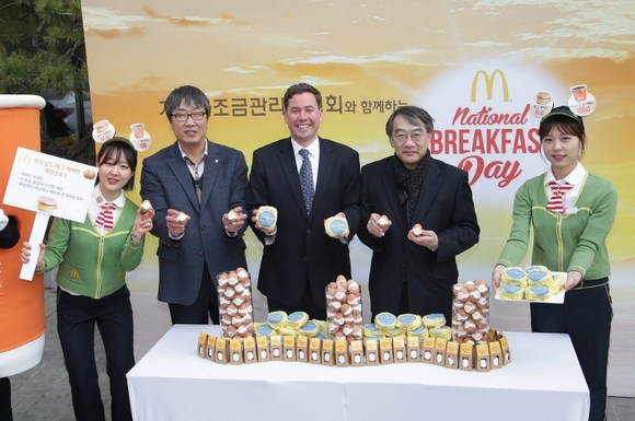 맥도날드는 9일 전국 360여개 맥도날드 맥모닝 판매 매장에서 진행된 '내셔널 브렉퍼스트 데이(National Breakfast Day)' 행사가 많은 고객들의 참여 속에 성황리에 종료됐다고 밝혔다.맥도날드는 이날 행사 참여 고객들에게 맥도날드의 대표 아침 메뉴인 에그 맥머핀(Egg McMuffin)을 매장당 1000개씩, 총 36만여개 전달했다.올해로 3년째를 맞은 이번 행사는 아시아 전역의 맥도날드 매장에서 동시에 진행됐다. 맥도날드는 각국의 매장을 방문한 고객들에게 전 세계적으로 인기 있는 맥도날드의 아침 메뉴인 에그 맥머핀을 무료로 제공하며 든든한 아침 식사와 함께 하는 건강한 하루를 선사했다.특히 이날 서울 인사동에 위치한 맥도날드 관훈점에서는 조 엘린저 한국맥도날드 대표이사, 안영기 계란자조금관리위원장 및 한국맥도날드의 계란 공급업체인 가농바이오 유재흥 사장 등이 참석해 맥도날드 제품에 사용되는 계란의 우수한 영양을 알리고 계란이 포함된 아침 식사 섭취를 장려하는 행사가 진행됐다.조 엘린저 한국맥도날드 대표이사는 "맥도날드 내셔널 브렉퍼스트 데이에 많은 관심과 사랑을 보내준 고객 분들에게 감사 드린다"며 "앞으로도 맥도날드는 1+등급에 빛나는 계란 등 최고 품질의 재료를 사용해 더욱 많은 고객들에게 맛과 영양이 모두 우수한 제품을 제공할 것"이라고 말했다.