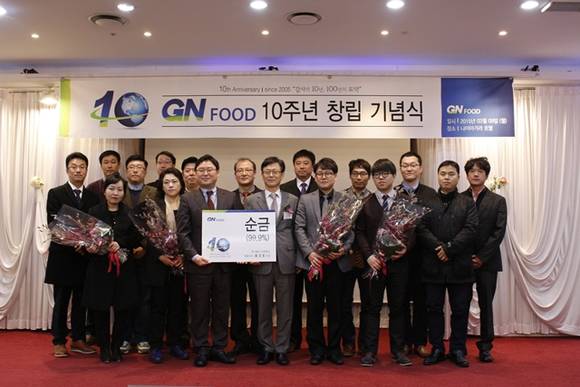굽네치킨을 운영하는 ㈜지앤푸드는 서울 베스트웨스턴 나이아가라 호텔 대연회장에서 창립 10주년 기념식 행사를 진행했다고 9일 밝혔다.㈜지앤푸드의 경영진과 임직원, 자회사 및 관계사 사장진이 참석한 이날 행사는 '10년의 발자취' 영상으로 시작됐다.회사 소개 후 이어진 기념행사에서는 대표이사 기념사, 내빈 축사, 관계사 감사패 증정, 케이크 커팅 및 건배 제의 순서로 진행됐다.지난 2005년 3월 9일 '더불어 사는 사회'를 목표로 창립한 굽네치킨은 국내에 오븐구이 치킨 선두주자로 나서며 치킨업계에 웰빙 트랜드 바람을 일으켰다. 또한 닭가슴살 온라인 쇼핑몰 '굽네몰'을 차례로 선보이며 치킨업계 최고의 자리에 올라섰다.이날 10주년 기념식에서 홍경호 ㈜지앤푸드 대표는 "10년 동안 어려움을 극복하기 위해 각자 맡은 분야에서 최선을 다해준 임직원 여러분들의 노고에 감사한다"며 "올해는 제2의 도약을 위해 국내 사업의 내실화와 해외 사업의 기반을 다지는 원년의 해"라고 말했다.이어 "㈜지앤푸드의 회사 규모도 어엿한 중견 기업으로 성장한 만큼 전문성과 지식을 겸비한 인원으로 창립 10주년을 통해 새롭게 도약하고자 한다. 과거의 우리보다는 오늘의 우리, 오늘의 우리가 어떻게 하느냐에 따라 미래의 우리가 밝을 것"이라며 "앞으로 세계적인 프랜차이즈 기업이 되기 위해 박차를 가할 것"이라며 ㈜지앤푸드의 새로운 도약을 강조했다.한편 ㈜지앤푸드는 이날 창립기념일에 맞춰 지난해 정체기를 극복하고 더욱 공고해진 내실을 기반으로 900억원이라는 매출 목표를 달성한 성과를 거둔 임직원들의 노고를 치하하고자 기념품을 전 직원에게 전달했다.