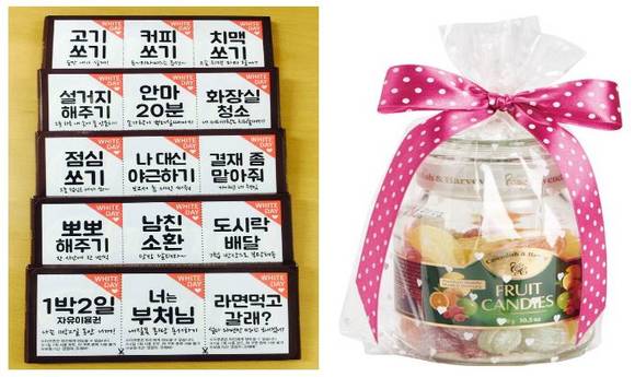 화이트데이에 사탕 대신 초콜릿을 찾는 소비자들은 증가하고 지속되는 불황에 화이트데이 선물 가격은 낮아지고 있는 것으로 나타났다.9일 GS25가 최근 4년간 화이트데이 상품 가격대별 매출 구성비를 살펴본 결과 2013년에 들어서면서 1만원 미만 상품의 매출 구성비가 크게 높아졌다. 2011년과 2012년 화이트데이의 경우 1만원 미만 상품의 매출구성비가 각 각 49%였으나 2013년에는 73.1%로 급격히 늘어난 것이다.화이트데이가 남성이 여성에게 사탕이나 초콜릿 등 선물을 주는 날로 인식된 것을 감안하면 지속되는 불황이 남성들의 소비 심리를 위축시킨 것으로 풀이된다.이에 GS25는 이러한 남성의 소비 형태 변화에 따라 올해는 1만원 미만의 중저가 세트 상품 비중을 약70%에 해당하는 49종을 준비했으며, 평소 판매하는 사탕과 초콜릿 그리고 최근 화이트데이 인기상품으로 떠오르고 있는 젤리류 상품에 대한 2+1 증정행사를 113종으로 대폭 확대했다.더불어 롯데마트가 2011년부터 지난해까지 화이트데이 매출을 분석한 결과 '화이트데이에는 캔디를 선물한다'는 공식이 지난해 처음으로 깨진 것으로 나타났다.화이트데이 선물도 발렌타인데이 때처럼 초콜릿이 대세가 된 것. 롯데마트에서 지난해 화이트데이 시즌 일주일간(3/8~3/14) 초콜릿 매출 구성비는 51.2%로, 캔디를 처음으로 제쳤다.이에 세븐일레븐은 지난 발렌타인데이에 화제를 모았던 '의리 초콜릿'의 2탄, 화이트데이용 '쿠폰 초콜릿'을 선보였다.쿠폰 초콜릿은 재치 있는 문구를 넣은 스티커를 세븐일레븐이 자체 제작해 가나초콜릿(2천원)에 붙인 상품으로 '남친소환', '도시락배달', '1박2일자유이용권' 등 연인용에서부터 '설거지해주기', '안마20분' 등 부부용, 직장 동료나 친구를 위한 '점심쏘기', '결재좀맡아줘', '나대신야근하기' 등으로 다양하게 준비됐다.세븐일레븐 관계자는 "지난 발렌타인데이에도 가나초콜릿에 문구가 담긴 스티커를 붙여 판매량이 전년 대비 2배 가량 증가하는 등 큰 인기를 끌었다"고 전했다.