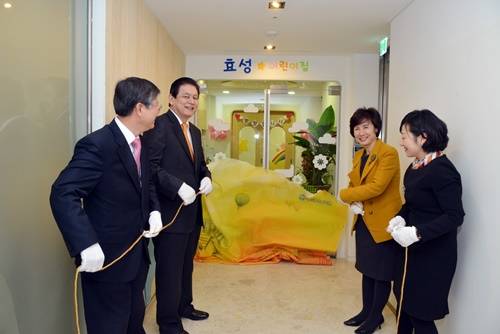 효성이 워킹맘의 육아부담을 덜고 행복한 직장 생활을 돕기 위해 '효성 어린이집'을 개원하고 현판제막식을 가졌다.이날 현판제막식에는 원아 학부모를 비롯, 효성 이상운 부회장과 푸르니 보육지원재단 김온기 상무가 참석해 개원을 축하하고 어린이집을 둘러보는 시간을 가졌다.40명 정원의 효성 어린이집은 마포 본사 4층에 보육실을 포함해 244.62㎡ 규모로 마련됐다.효성그룹 측에 따르면 워킹맘들이 일에 집중할 수 있도록 오전 7시 반부터 오후 8시까지 원아들의 보육을 책임질 예정이다.또한 전문 위탁업체인 '푸르니 보육지원재단'의 우수한 교사들이 제공하는 질 높은 보육으로 이루어진다.효성 어린이집은 전문기관을 통해 환경 유해 요소 검출에 대한 검사를 실시하고, 공사 자재에 대한 친환경 인증을 획득하는 등 임직원 자녀를 위한 최적의 보육 환경을 갖추고 있다.이날 2살 아들과 함께 출근한 효성 박재연 대리는 "믿고 맡길 수 있는 회사 어린이집이 생겨 안심하고 업무에 집중할 수 있게 됐다"며, "회사 어린이집 덕분에 즐거운 마음으로 일하고 가정과 회사 생활을 균형 있게 병행할 수 있을 것으로 기대한다"고 말했다.이상운 부회장은 "여직원들이 밝은 미소로 아이들과 즐겁게 출근할 수 있게 돼 회사 분위기도 밝아지는 것 같다.능력 있는 여직원들이 자녀 보육에 대한 부담을 덜고 회사에서 역량을 마음껏 펼칠 수 있기를 바란다"고 밝혔다.한편, 효성은 지난달 26일 창원공장에서도 직장 어린이집 개원식을 열고 지난 2일부터 본격적으로 어린이집을 운영하고 있다.