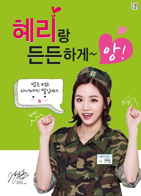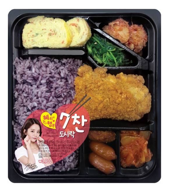 편의점 세븐일레븐이 걸스데이 혜리를 모델로 한 도시락 2종을 12일 출시했다. MBC '진짜사나이'에서 보여줬던 혜리의 건강하고 잘 먹는 이미지를 도시락에 담아 브랜드화 시키겠다는 전략이다.이번에 선보이는 '혜리 7찬 도시락'은 닭다리살, 소시지, 계란말이 등 7가지 반찬으로 구성된 푸짐한 도시락 상품이다. 또한 흑미밥을 사용해 식감과 영양까지 고려했으며, 양도 기존 상품 보다 늘려 든든한 한끼 식사가 되도록 만들었다.'혜리 직화 소고기덮밥'은 국산 소고기를 한 점 한 점 얇게 잘라 갈비맛 양념에 재운 도시락이다. 소고기의 부드러운 식감을 구현하기 위해 습식 오븐을 특별히 제작해 구운 것이 특징이다.이번 혜리 도시락 개발에는 혜리가 직접 참여한 것으로 알려졌다. 혜리가 이번 도시락 시제품을 맛 보고 의견을 전달하는 등 본인의 이름을 건 도시락에 깊은 관심을 보였다.세븐일레븐은 앞으로 출시되는 도시락에 대해서도 혜리의 의견을 적극 반영할 계획이다.황진복 세븐일레븐 커뮤니케이션부문장은 "우리나라 인구통계적인 변화와 해외 사례를 참고할 때 향후 국내 도시락 시장은 2배 이상 커질 것으로 예상된다"며 "혜리 도시락은 단순히 연예인 모델 사용에서 그치지 않고 상품 자체에 심혈을 기울인 만큼 좋은 반응을 기대한다"고 말했다.