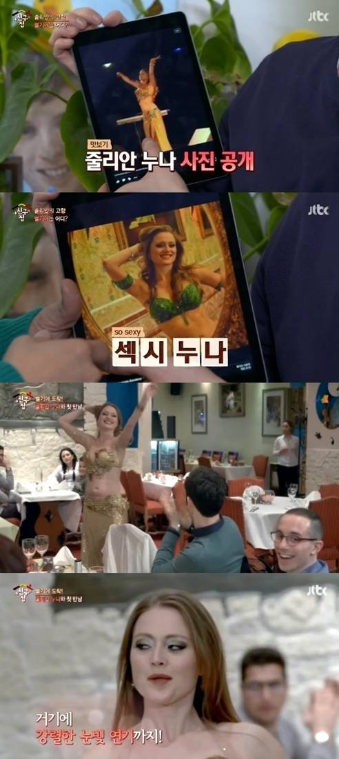 줄리안 누나는 전 세계에서 손가락 안에 꼽히는 프로 벨리댄서다. 처음엔 누나의 파격적인 복장에 제대로 쳐다보지도 못했던 유세윤과 장위안은 누나의 이끌림에 함께 커플 댄스까지 추며 벨기에에 적응해가는 모습을 보였다.