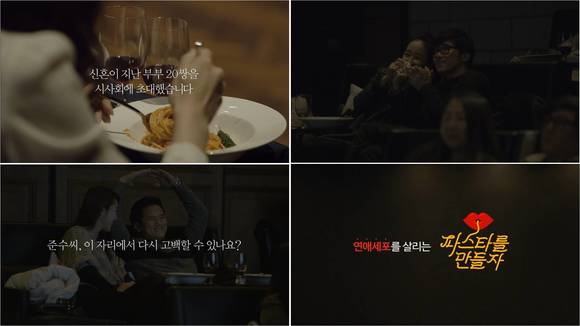 동원F&B의 파스타소스, '파스타를 만들자' 출시 기념 온라인 바이럴 영상이 17일 공개된다.'파스타를 만들자' 바이럴 영상은 신혼이 지난 평범한 부부 20쌍을 영화관으로 초대해 진행한 깜짝 이벤트를 몰래카메라 형식으로 담았다.영화 시사회에 초대돼, 서빙된 파스타를 먹으며 영화를 기다리던 부부들은 스크린에 상영되는 본인들의 결혼식 영상들을 보고 놀란다. 뒤이어 다시 결혼 전의 뜨거웠던 연애시절을 떠올리게 하는 영상과 멘트가 상영되고, 암전과 함께 서로에게 사랑을 표현할 수 있는 키스타임이 진행된다.동원F&B 관계자는 "파스타는 연인들의 음식이다. 대부분 부부들이 결혼 전에는 파스타집에서 데이트를 하다가, 결혼 후엔 집에서 생활을 한다. '파스타를 만들자'를 활용해 집에서도 데이트를 하면서, 잊고 있었던 연애세포를 되살려 보셨으면 한다"고 전했다.한편 '파스타를 만들자' 4종은 시중에서 볼 수 있는 묽은 형태의 파스타소스와 달리, 재료가 살아있는 덩어리 형태로 담아 식감이 좋으며 맛이 깊고 풍성하다. 토마토를 비롯해 갖가지 야채와 치즈, 해물 등의 신선한 재료를 담아 고급스런 맛을 최대한 살렸다.