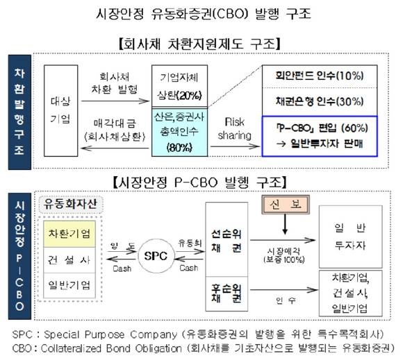 '시장안정 P-CBO 제도'가 올해 말까지 연장됨에 따라 신보는 8회에 걸쳐 총 2조6000억원의 시장안정 P-CBO를 발행할 예정이다. P-CBO란 신규 발행 채권을 기초자산으로 하여 발행되는 자산담보부증권이다.