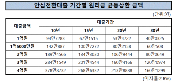 3억원짜리 집을 구입하며 약 1억원을 주택담보대출로 받은 직장인들의 경우 안심전환대출을 통해 부담해야 하는 금액은 크게 무리가 되지 않을 것으로 파악된다.