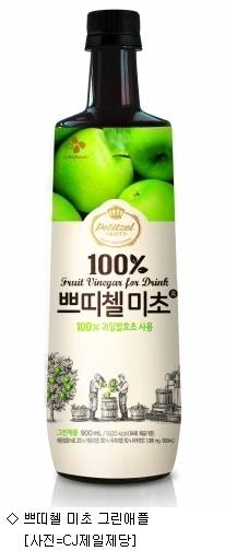 음용식초 성수기를 앞두고 CJ제일제당이 색(色)에 대한 고정관념을 깨는 신제품 '쁘띠첼 미초 그린애플'을 출시한다.7일 업계에 따르면 음용식초 시장은 지난해 기준 시장규모가 약 540억원(링크아즈텍 기준)에 이르며 시장 형성 초기에 출시된 붉은색의 석류맛 제품이 대세로 자리잡은 채 10여 년이 지났고, 이에 식상함을 느끼는 소비자가 늘고 있는 상황이다.이에 CJ제일제당은 지난해 상반기에 '청포도'를, 하반기에는 '미초 레몬유자'를 출시하는 등 기존 제품과 완전히 다른 색과 맛을 보유한 신제품을 잇달아 선보여 성숙기에 접어든 음용식초 시장에서 새로운 바람을 불러일으켰다.그 결과 쁘띠첼 미초는 지난해 음용식초 빅3 브랜드 중 유일하게 매출이 늘어 약 11%의 매출 성장률(링크아즈텍 기준)을 기록했고, 이번 '그린애플' 출시를 통해 올해도 성장세를 유지하겠다는 전략이다.'쁘띠첼 미초 그린애플'은 항산화 기능이 있는 폴리페놀이 일반 사과에 비해 풍부한 청사과 4개에 해당하는 성분이 그대로 들어있는 음용식초다. 사과 특유의 깔끔하고 청량한 맛이 살아 있어 음용식초의 성수기인 봄~여름에 좋은 반응이 예상된다.특히 100% 과즙을 자연 숙성시킨 과일 발효 식초로서 천연 유기산이 많고 미네랄 등의 영양성분이 풍부하게 들어 있는 데다가, 다른 음용식초 제품에 비해 과즙의 양이 풍부하게 들어있다. 이 때문에 탄산수나 우유 등과 섞어서 먹을 때도 과일 본연의 맛을 느낄 수 있어 다양한 레시피로 활용이 가능하다.CJ제일제당 측은 "쁘띠첼 미초 그린애플은 출시 사전 단계 맛 평가에서 최고 수준의 평가를 받은 제품이다"라고 말하고 "소비자가 집에서도 손쉽게 카페 수준의 과일 음료를 즐길 수 있는 제품으로 자신 있게 소개할 수 있다"라고 덧붙였다.