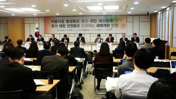 9일 국회 기획재정위원회 조세소위원회 위원장인 새누리당 강석훈 국회의원 주최로 열린 '자본시장 활성화를 통한 국민 재산증대 및 국가 재정 건전화를 도모하는 세제개편 방향' 토론회에서는 해외 투자펀드와 파생상품의 과세 형평성, 거래세 인하, 한국형 개인종합자산관리계좌(ISA) 세제혜택 등에 대해 논의됐다.