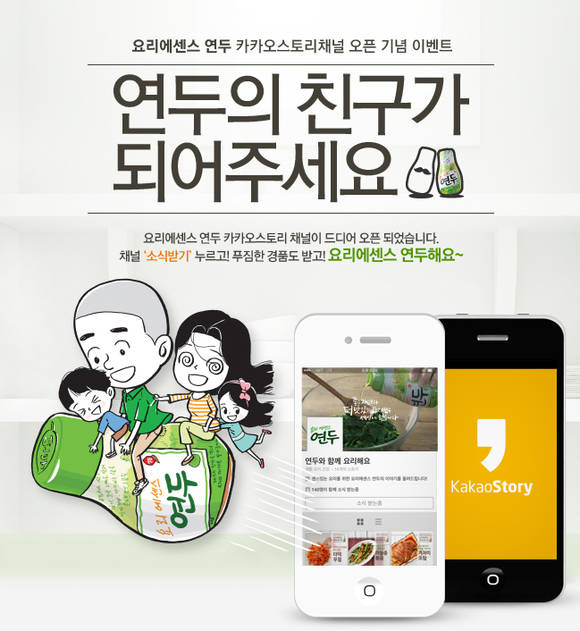 샘표 '요리에센스 연두'가 공식 카카오스토리 채널 '연두와 함께 요리해요'를 오픈한다고 10일 밝혔다.샘표는 새롭게 오픈한 카카오스토리 채널을 통해 요리에센스 연두를 활용한 다양한 레시피와 유용한요리 팁, 식재료 고르는 법 등의 정보를 소비자들에게 제공할 예정이다.요리 초보들도 쉽게 요리를 배우고 따라 할 수 있도록 사진과 만화 등 재미있는 콘텐츠로 구성하며, 만화 '연두와 함께 얌얌'은 음식과 요리를 주제로 한 웹툰으로 널리 알려진 조경규 작가가 연재한다.샘표는 이번 카카오스토리 오픈을 기념해, 오는 17일까지 '연두의 친구가 되어주세요' 이벤트를 진행한다. 연두 카카오스토리 소식 받기를 누른 후, 개설 축하 댓글을 등록하면 추첨을 통해 총 100명에게 연두 세트를 증정한다.이주희 샘표 마케팅팀 담당자는 "기존에도 블로그, 페이스북, 트위터 등의 다양한 SNS채널을 통해 소비자와의 소통에 힘써왔지만 보다 소비자들에게 친숙하게 다가가기 위해 연두의 단독 카카오스토리 채널을 오픈했다"면서 "소비자들과 재료 본연의 맛을 살려 맛있고 건강한 요리를 즐기는 법을 나누는 공간으로 확대해 나가겠다"고 밝혔다.