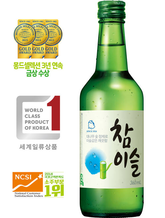 하이트진로의 참이슬이 2015년 몽드셀렉션(Monde Selection) 소주 부문 금상(Gold)을 수상했다.22일 하이트진로는 참이슬의 올해 몽드셀렉션에서 금상을 수상, 지난해 11월 17.8도로 리뉴얼하며 기존의 특허받은 천연 대나무활성숯 정제공법 보다 대나무숯을 증량해 업그레이드한 자연주의 정제공법을 인정받았다고 밝혔다. 매년 벨기에에서 열리는 몽드셀렉션은 세계 최고의 권위를 자랑하는 3대 주류 품평회 중 하나로, 지난 1961년 이후 각 부문에 걸쳐 공정한 심사를 통해 우수한 제품을 선정하고 있다.참이슬은 목넘김은 더 깔끔하게 향은 더 부담 없이 개선, 숙취가 없는 깨끗한 참이슬의 맛으로 품질을 향상시킨 성과를 세계적으로 평가 받았다. 또한 수상에는 다양한 주질 테스트와 최적의 소주 블렌딩 기술을 통해 소비자의 저도화 요구에 맞는 최적의 알코올 도수를 적용한 점이 주요했다.이 외에도 참이슬은 1998년 이후 국가고객만족지수(NCSI)에서 총 15회 소주 부문 1위를 수상했으며, 올해는 산업통산자원부와 코트라(KOTRA 대한무역투자진흥공사)에서 부여하는 세계일류상품에 주류부문 최초로 선정되었다.또한 최근 브랜드 가치 평가업체인 브랜드스탁이 발표한 2015년 1분기 '대한민국 100대 브랜드'에서 8위에 오르며, 작년 동기 대비 3순위 상승하는 인기를 입증하는 등 소주 브랜드 중 유일하게 랭킹 안에 위치하여 다시 한번 국민 소주 브랜드로서의 위상을 확인했다.하이트진로 마케팅실 이강우 상무는 "몽드셀렉션에서 참이슬이 3년 연속 금상을 수여한 것은 끊임없이 제품을 혁신해온 점 때문이다"라며 "1998년 10월에 처음 출시된 참이슬이 품질, 브랜드 파워, 판매량 등에서 소주 시장의 역사를 바꾼 획기적인 제품이라는 평가를 받고 있는데, 이번 수상이 대한민국을 넘어 세계적인 브랜드로 인정 받은 계기가 되었다. 이에 앞으로도 더욱 발전시켜 나가겠다"고 설명했다.