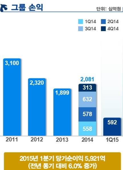 신한금융그룹의 대손충당금 전입액은 3147억원을 기록했다. 경남기업 등 기업구조조정 기업들에 대한 추가 충당금 반영으로 전년동기 대비 88.4% 증가한 수준이다.1분기 당기순이익 증가에 따른 자본 확충이 지속되면서 그룹의 국제결제은행(BIS) 기준 자기자본비율과 보통주 자기자본비율은 각각 12.9%, 10.7%를 기록했다. 은행의 BIS 자기자본비율과 보통주 자기자본비율도 각각 15.2%, 12.7%를 기록, 양호한 자본적정성을 유지했다.주계열사인 신한은행의 1분기 순이익은 3899억원으로 전년 동기대비 8.3% 감소했다. 시중 금리 하락으로 순이자마진이 감소하면서 순이익이 줄어든 것.은행의 순이자마진(NIM)은 지난해 동기대비 0.19%포인트(19bp) 감소한 1.58%로 집계됐다.