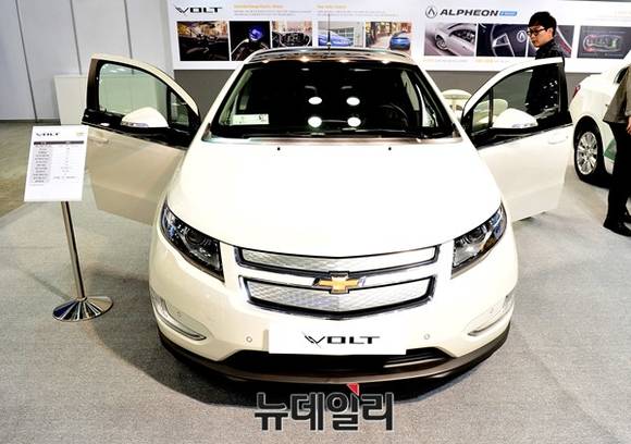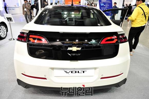 4일 경기 고양 킨텍스에서 열린 제28회 세계 전기자동차 학술대회(EVS28)에 쉐보레 전기차 볼트가 전시 돼 있다.볼트는 주행거리 연장 전기차(EREV) 차량으로 전용 리튬 이온 배터리와 드라이브 유닛, 주행거리 연장 시스템으로 이뤄진 볼텍 시스템을 통해 순수 전기 배터리로만 80km까지 주행 가능한 것으로 알려졌다.EVS28 행사는 전기자동차 기술을 주도하는 글로벌 업체들을 한 곳에서 만날 수 있는 세계 최대 전기자동차 행사로 친환경과 지속 가능성을 화두로 글로벌 자동차 시장 의 전기자동차 트렌드 및 기술진보를 한눈에 확인할 수 있다.이번 행사에는 45개국 1천여 명이 참석하며, 일반 전시회에는 전 세계 150개 업체가 400여 개 부스를 설치했다.