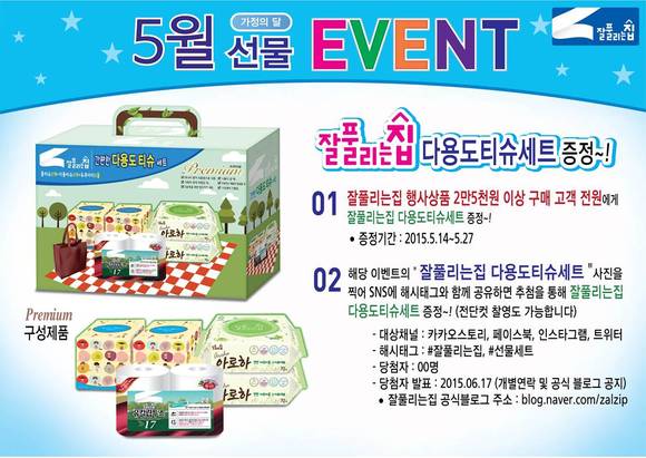 이에 롯데마트에서 행사중인 잘풀리는집 상품을 2만5000원 이상 구매할 시 구매고객 전원에게 잘풀리는집 다용도 티슈세트를 증정한다.