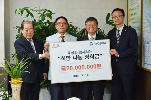 효성그룹이 마포구 구민들을 위해 다양한 나눔 활동을 펼쳤다.효성은 본사가 위치한 마포구의 취약계층 학생들에게 '희망나눔 장학금'을 지원하고, 500세대에 '사랑의 쌀'을 전달했다고 15일 밝혔다.효성은 국민기초생활수급자ㆍ장애인ㆍ차상위계층 등 도움이 필요한 중ㆍ고등학생을 위한 2,000만원의 장학금을 재단법인 마포인재육성장학재단에 전달했다.마포인재육성장학재단은 장애인, 특히 문화예술을 전공하는 학생들을 우선순위로 장학생을 선발하여 10월에 효성의 ‘희망나눔 장학금’을 총 20명의 학생들에게 수여할 예정이다.또한 효성은 마포구에 거주하는 독거노인 등 차상위계층 500세대에 20kg 백미를 전달했다.쌀은 임직원들이 자발적으로 금액을 기부하면, 회사에서도 같은 금액을 기부하는 매칭그랜트(matching grant) 제도를 통해 모인 돈으로 마련했으며, 지역농촌을 돕기 위해 경남 함안군 군북농협에서 쌀을 구입했다.전달식에 참석한 장형옥 효성나눔봉사단장은 "매년 임직원들이 모은 정성으로 쌀을 구매하고 있다.마포구 주민들이 모쪼록 장학금과 쌀로 걱정을 더셨으면 좋겠다"고 말했다.한편, 효성은 2006년부터 매년 마포구의 독거노인 등 취약계층을 위해 '사랑의 쌀'을 지원하고 있으며, 이외에도 '사랑의 김장김치', '사랑의 연탄나눔','사랑의 헌혈'등 주변의 어려운 이웃을 위해 지속적인 사회공헌 활동을 펼치고 있다.