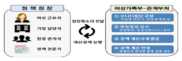 구체적으로 모니터링단은 여성의 경력유지를 위한 정부 정책들이 현장에 자리 잡을 수 있도록 애로사항을 지속적으로 발굴하고 개선해 정책의 효과성을 높인다는 계획이다.