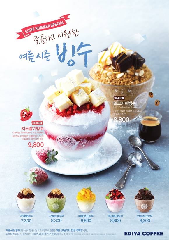 이디야커피는 본격적인 여름 시즌을 앞두고 전국 매장에서 빙수 2종을 출시한다고 19일 밝혔다.이번에 새롭게 출시되는 '빙수 2종'은 20~30대 여성들이 즐겨 찾는 달콤한 맛을 강조한 것이 특징. 은은한 향의 커피와 달콤한 브라우니가 어우러진 '밀크커피빙수'와 부드러운 치즈 케익에 상큼한 딸기 소스가 조화롭게 어우러진 '치즈딸기빙수' 2종으로 구성됐다. 여름 시즌 한정 상품으로 오는 9월 30일까지만 판매된다.이디야는 여름 시즌을 맞아 리얼팥빙수, 리얼녹차빙수, 애플망고빙수 등 기존 빙수 5종 판매도 개시, 이번 빙수 신메뉴 2종과 더불어 총 7종의 빙수 메뉴를 선보인다. 여름 시즌 빙수 라인업을 더욱 강화함으로써 빙수를 찾는 고객들에게 더욱 넓은 선택의 폭을 제공한다.이디야커피 관계자는 "매년 급증하는 빙수 판매량과 인기로 고객들의 선택 폭을 넓히기 위해 매년 신 메뉴를 선보이고 있다"며 "올 여름에도 뜨거운 더위가 예상되는 만큼 빙수 라인업 강화를 통해 고객들의 니즈를 충족하고 소비자의 만족에 최선을 다하겠다"고 말했다.