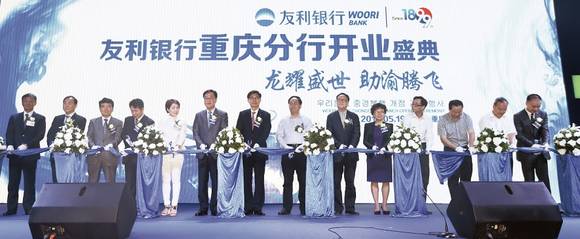 우리은행이 지난 19일 중국 충칭에서 이광구 은행장을 비롯한 충칭시 고위 공무원, 현지 진출 기업 및 교민, 대사관 관계자 등 총 200여명이 참석한 가운데, 국내 은행 최초로 개설한 '충칭분행 개점식'을 개최했다고 20일 밝혔다.