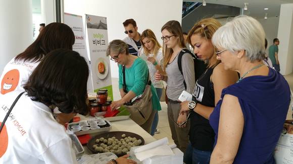 이탈리아 밀라노에서 열리고 있는 '2015 밀라노엑스포'에서 CJ제일제당이 '김치 브랜드 위크' 행사를 열고 한국 김치를 알리기에 나섰다.CJ제일제당은 지난 27일부터 30일까지 나흘간 세계김치연구소와 함께 한국의 김치를 소개하는 '김치 브랜드 위크' 행사를 밀라노에서 열었다고 31일 밝혔다. 이번 행사는 한국관광공사가 한국의 문화와 관광 매력을 알리는 '한국문화관광대전' 행사의 일환으로 진행됐다.'김치 브랜드 위크'를 통해 CJ제일제당과 세계김치연구소는 한국관을 방문한 관람객들에게 한국의 김치와 김장문화를 소개했다. 이하연 김치명인이 한국 전통의 배추김치 담그기를 시연하며 김치 원재료, 담그는 방법, 김치 식문화 등을 설명해 관람객들의 눈길을 끌었다.또한 관람객들이 김치의 맛을 체험할 수 있도록 김치를 활용한 김밥을 만들어 제공했고, CJ제일제당의 프리미엄 글로벌 신제품 '비비고 김치' 시식도 함께 진행됐다.CJ제일제당 비비고 브랜드 담당 장현아 부장은 "김치가 전 세계적으로 발효 건강식품으로 각광을 받고 있는 가운데 외국인들에게 한국 김치의 맛과 김장 문화를 알리기 위해 이번 행사를 준비하게 됐다"며 "특히 한국 김치를 소개하며 밀라노 엑스포에서 처음으로 선보인 ‘비비고 김치’가 한국을 대표하는 김치 브랜드로 알릴 수 있는 좋은 기회가 됐다"고 밝혔다.