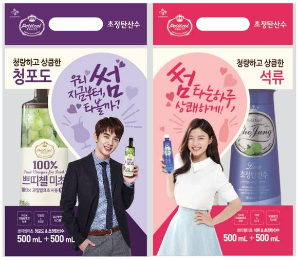CJ제일제당의 '쁘띠첼 미초'가 일화의 '초정탄산수'와 손잡고 협업 마케팅을 진행한다고 8일 밝혔다.쁘띠첼 미초는 초정탄산수와 미초를 섞어 마시는 레시피를 개발하는 한편, 판매 현장과 온라인 등을 통해 '미초탄산수'를 적극적으로 알릴 계획이다.CJ제일제당은 대형마트 시음행사를 활발하게 진행해 실제 제품이 판매되는 현장에서 쁘띠첼 미초와 초정탄산수를 함께 즐기는 레시피를 적극적으로 알린다.특히 SSM을 비롯한 특정 유통 경로에서는 쁘띠첼 미초와 초정탄산수를 동시에 구매할 수 있는 묶음상품도 출시한다. 이 제품은 쁘띠첼 광고 모델인 배우 유승호와 초정탄산수 광고 모델인 배우 김유정의 이미지를 활용한 두 가지 형태로 출시되며, 두 제품을 나란히 배치하면 하트 모양이 이뤄지게 만들었다.온라인에서는 최근 화제가 되고 있는 '픽셀 아트(Pixel art : 사각형 그래픽을 여러 개 조합해 만드는 시각이미지)'로 만든 영상물을 만들었다. 애니메이션 형식으로 구성된 이 영상물에서는 미초와 초정탄산수를 1:2의 비율로 섞어 마시는 최적의 레시피를 소개하고 있다.CJ제일제당 쁘띠첼팀 김병규 부장은 "쁘띠첼 미초와 초정탄산수 모두 여름 성수기에 승부를 걸고 있는 제품인 만큼, 이번 협업을 통해 좋은 성과가 기대된다"라며 "앞으로도 탄산수 외에도 주류를 비롯한 다양한 제품과 함께 콜라보레이션을 진행할 계획이다"라고 덧붙였다.