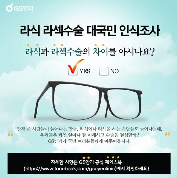 GS안과가 '라식·라섹수술 대국민 인식 설문조사'를 실시한다고 16일 밝혔다.