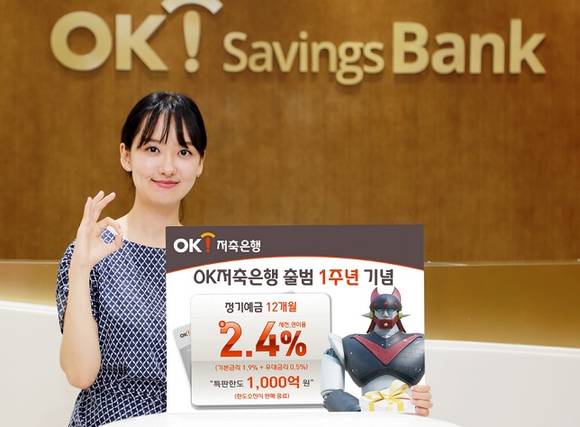 OK 저축은행이 오는 7일부터 1000억원 한도로 'OK저축은행 출범 1주년 기념 정기예금 특판'을 실시한다고 6일 밝혔다.
