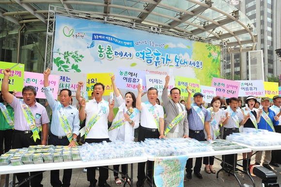 서울 도심에서 농민들이 여름휴가객을 농촌으로 유치하기 위해 직접 홍보전에 나섰다.