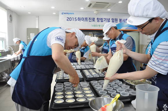 하이트진로가 오는 20일 창립기념일을 맞아 빵나눔 봉사활동을 펼쳤다.김인규 하이트진로 사장을 비롯한 임원 25명은 17일 대한적십자사 서초·강남 희망나눔 봉사센터에서 빵 600개를 직접 만들어 인근 복지관에 전달했다. 같은 날 영등포 쪽방촌에는 생수 500박스를 지원하는 등 소외계층을 위한 활동을 이어갔다.봉사활동에 참여한 김인규 사장은 "정성을 담아 직접 만든 빵을 이웃과 나눌 수 있어 기쁘다"며 "소외된 이웃들을 지속적으로 돌아보고 도움이 되는 사회공헌활동을 할 수 있도록 적극 노력할 계획"이라고 밝혔다.