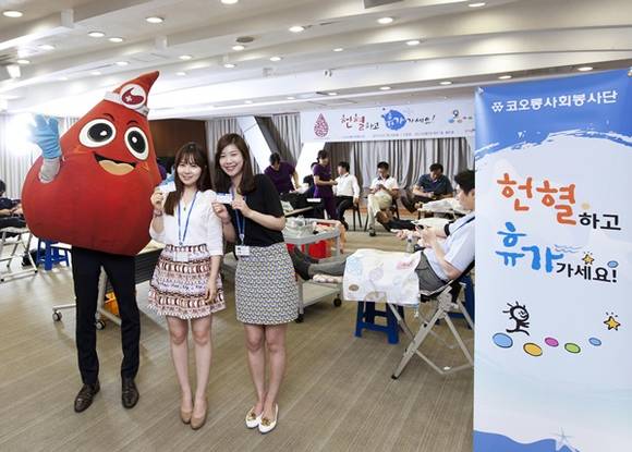 코오롱은 2013년부터 직원들이 휴가를 떠나기 전에 자발적으로 헌혈에 참여하도록 매년 캠페인을 진행하고 있다.