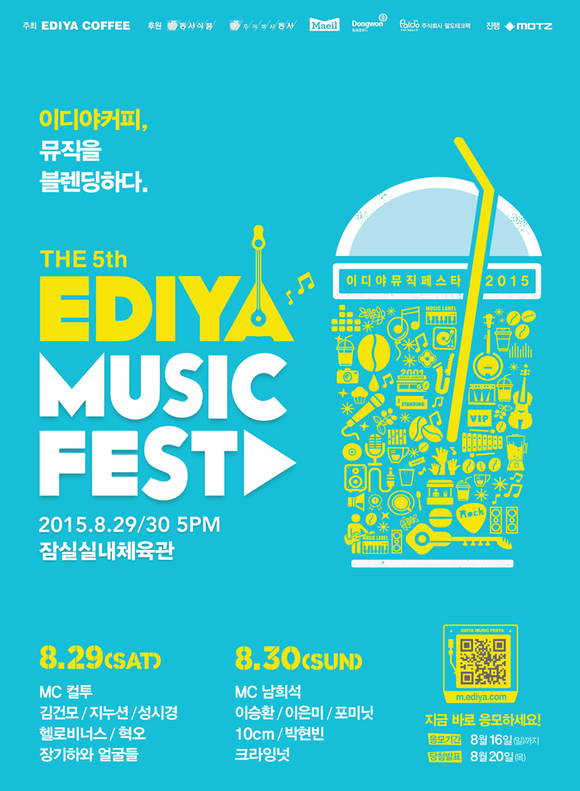 이디야커피가 올해에도 고객 감사 이벤트로 고객 2만명을 초청, 내달 29·30일 양 일간 '제5회 이디야 뮤직 페스타(EDIYA MUSIC FESTA)'를 진행한다고 20일 밝혔다.'이디야 뮤직 페스타'는 커피업계 최초로 시작된 대규모 문화행사로서 국내 최정상급 뮤지션을 초대해 무대를 꾸며오고 있다. 지난해에도 잠실실내체육관에 하루 1만명씩 양일간 총 2만 명의 고객을 초청해 큰 호응을 얻은 바 있다.2011년부터 시작해 5회째를 맞는 이번 공연은 '이디야커피 뮤직을 블렌딩하다'라는 콘셉트로 진행 될 예정이다.특히 올해 공연은 각기 다른 특색을 가진 이디야커피의 4가지 원두(콜롬비아, 케냐, 과테말라, 코스타리카)가 하나로 블렌딩돼 더욱 풍부한 향미와 깊은 맛을 내는 것처럼 대중가수, 인디밴드 등 다양한 음악을 블렌딩하여 다채로운 무대가 연출될 예정이며, 추후 커피문화를 선도하는 이디야커피의 문화지원 사업으로서 인디밴드 등에 더 많은 기회를 제공할 것이라고 이디야 측은 밝혔다.올해는 이틀 간 각각 6팀씩 총 12팀의 뮤지션이 무대에 오른다. 첫 날인 29일에는 국내 최고 MC이자 개그맨인 컬투 진행으로 자타공인 국민가수 김건모를 비롯해 지누션, 성시경, 헬로비너스, 혁오, 장기하와 얼굴들이 무대를 꾸민다.이어지는 30일에는 인기 개그맨 남희석 진행으로 지난해에도 공연 한 바 있는 공연의 신 이승환과 이은미, 포미닛, 10cm, 박현빈, 크라잉넛이 무대의 마지막을 뜨겁게 달굴 예정이다.문창기 이디야커피 회장은 "이디야 뮤직 페스타는 이디야커피를 사랑하고 아껴주시는 고객님들과 일선 현장에서 최선을 다하시는 점주님들을 위해 마련한 뜻 깊은 자리"라며 "국내 최고 뮤지션들의 무대와 함께 이디야 고객들이 추억을 만들 수 있는 좋은 기회가 될 것으로 기대한다"고 말했다.