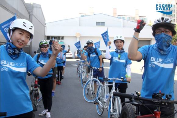 동아오츠카의 포카리스웨트가 오는 9월 개최되는 '2015 포카리스웨트 블루로드캠페인'을 앞두고 사전 홍보에 열을 올리고 있다고 22일 밝혔다.올해로 3회째를 맞는 블루로드캠페인은 자전거 생활화를 권장하는 자전거 행사로, 포카리스웨트가 주최하는 블루(BLUE)캠페인의 일환이다. 도심 속 라이딩을 통해 땀의 가치를 느끼고 자전거도로 생활화를 알리는데 목적을 둔다.동아오츠카는 이번 행사의 취지를 알리고 몸소 실천하기 위해 지난 6월말 임직원 및 자원봉사 라이더 20여 명을 '블루로드 홍보단'으로 선발하고 자전거 도로 라이딩 투어를 진행하고 있다. 투어는 동아오츠카 안양공장을 출발해 여의나루 한강공원 도착 후 출발지점으로 돌아오는 코스(왕복 45km)로 운영된다.지난 2일을 시작으로 10여 차례에 걸쳐 자전거 도로 라이딩 투어한 블루로드 홍보단은 본 행사가 개최되는 9월 13일까지 홍보 활동을 펼칠 예정이다.
