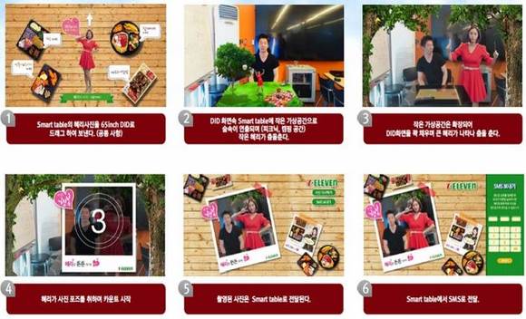 세븐일레븐이 '미래형 편의점' 구축에 한 발짝 다가섰다. ICT 솔루션을 통한 미래형 스마트 공간과 지역 맛집을 숍인숍으로 융합한 '창조경제형 편의점'을 시도한 것.23일 세븐일레븐은 서울 명동에 세븐일레븐 도시락카페 2호점인 '중국대사관점'을 열었다. 이번 중국대사관점은 1층에 일반 편의점 공간과 창조경제 공간이 복층으로 연결되어 있는 구조다.기존에 세븐일레븐이 '도시락 카페' 형태로 선보인 KT강남점에 이어 두 번째로 시도한 이번 중국대사관점은 1층 편의점 공간 내부에 있는 계단을 올라가면 편의점에서 구매한 음식과 휴식을 즐길 수 있는 공간이 나오도록 구성했다.특히 이 공간은 SK텔레콤과의 제휴를 통해 '스마트 공간'으로 구성해 놓은 것이 특징으로, 터치형 웹서핑과 경품게임 등을 즐길 수 있는 '스마트 테이블(Smart Table)'이 들어서 있다.6개의 스마트 테이블 중 1개는 '증강현실(현실과 가상의 신기한 조화)' 기술이 적용되어 있다. 이 테이블에 앉아 세븐일레븐 도시락 모델인 걸스데이 혜리와 함께 한다는 버튼을 선택하면 앞에 있는 대형 화면을 통해 혜리와 함께 있는 모습을 볼 수 있게 된다. 함께 춤을 추고 기념 사진을 찍은 영상과 사진은 현장에서 문자 메시지로 받을 수도 있다.SK텔레콤 기업솔루션부문 이용익 팀장은 "이 공간 안에서 고객들이 식사와 더불어 펀(Fun)한 요소들 제공할 수 있도록 노력했다"고 전했다.한 쪽 벽면은 풀HD스크린 10대를 연결해 만든 '미디어 윈도우(Media Window)'가 설치되어 있다. 고객이 직접 윈도우를 터치하여 맑은 해변, 눈 또는 비오는 날, 한 밤중 풍경 등 다양한 분위기를 연출할 수 있다.이 밖에도 세븐일레븐 중국대사관점에는 쌍방향 홍보물인 '디지털 포스터'와 '디지털 가격표'도 설치되어 있다.이번 중국대사관점은기존 도시락 카페처럼 1층 편의점에서 사온 도시락 등 상품을 먹을 수 있도록 유도하면서, 더불어 2층에 부산 지역 대표 어묵기업 '고래사'를 입점시켜 '창조경제형 편의점'을 지향한 것도 특징이다.'고래사'는 1963년에 어묵 사업을 시작, 현재 서울에는 롯데백화점 영등포점, 잠실점과 서촌에 소형 단독 매장이 진출해 있는 중소기업이다.고래사는 부산창조경제혁신센터를 통해 세븐일레븐과 인연을 맺은 뒤 서울 중심부에 본격 진출하며, 함께 '창조 경제'의 새로운 모델을 제시하게 됐다.세븐일레븐은 이 매장을 첫 발판으로 삼아 가맹점 확대를 계획 중이다.세븐일레븐 관계자는 "이번 중국대사관점 위치가 은근히 오피스가 많은 지역이라 수요가 있는 편이다"라며 "명동 특성 상 주변 식당이 가격대가 높다보니 저렴한 도시락 찾는 소비자들 위한 공간이 되지 않을까 한다"고 전했다.정승인 세븐일레븐 대표는 "상품과 서비스 차별화도 중요하지만 미래 편의점의 경쟁력은 고객이 소소한 행복을 느낄 수 있는 공간을 만드는 것에서 나올 수 있다"며 "이번 창조경제형 편의점을 시작으로 다양한 협력 모델을 시도하고 향후 편의점의 새로운 진화를 선도할 계획이다"고 말했다.