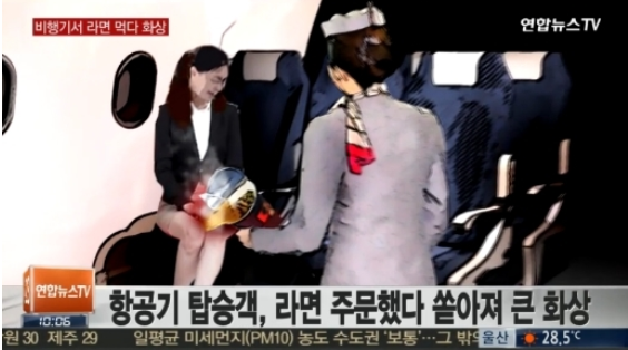 승무원 A 씨는 끓인 라면을 쟁반에 들고 와 통로쪽에서 손을 뻗어 창가 쪽에 앉은 장 씨의 테이블에 놓으려다 장 씨의 하반신에 두 차례에 걸쳐 라면이 쏟아졌다.